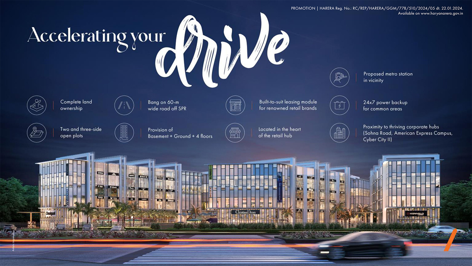 Discover a limited edition opportunity at South Drive’s SCO plots, where you seize control of your success story. Situated in Sector 69, Gurugram, our SCO format offers the flexibility to shape your business or brand according to your vision. With a generous floor allowance, you have ample space to explore and grow. Centrally located in a rapidly rising micromarket, South Drive ensures both opportunities and convenience thrive.