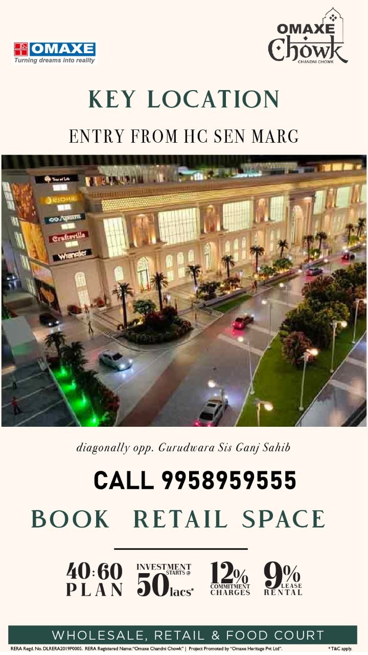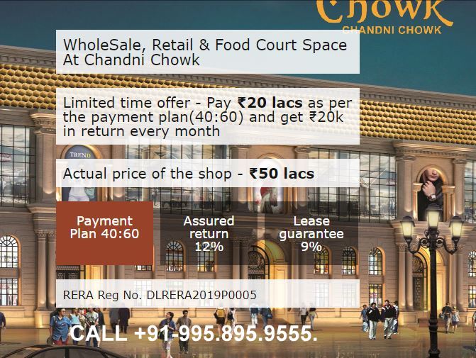 Omaxe Chowk Retail Spaces in Chandni Chowk Delhi | 60:40 Pay Plan | 12% Return Per Annum | 9% Lease Guarantee | 51% Guaranteed Income in 5 years