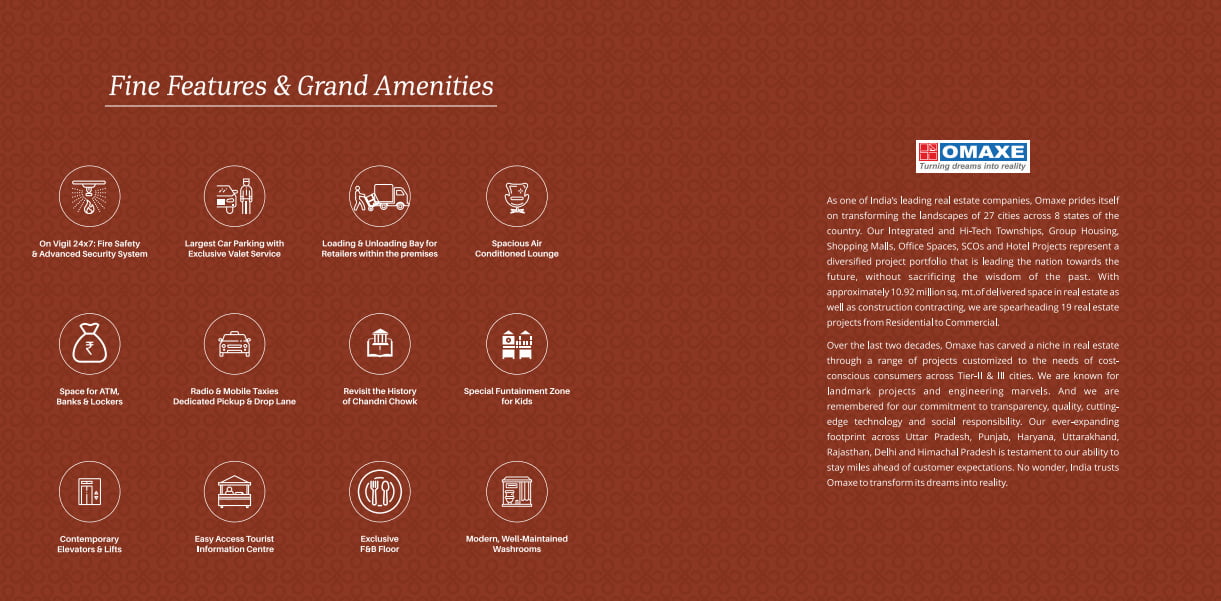 Area Advantages that Make this Project Ideal to Invest in The complex in Omaxe Chandni Chowk Delhi has been deliberately grown near the business center points.
