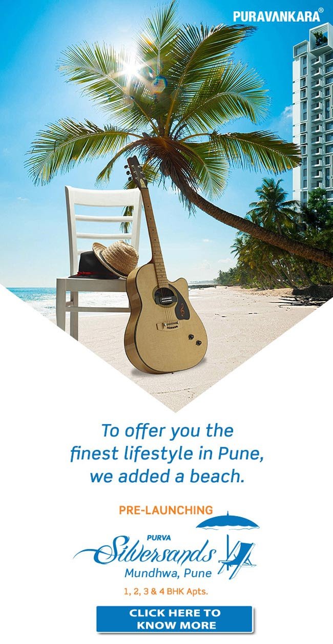 Welcome to Purva Silversands, the first residential project which is built on the theme of tropical beach in Pune. Spread across 19 acres, Purva Silversands brings to you the best experiences of beaches from all across the world. A home at Purva Silversands therefore, guarantees you a life-long vacation.The development comprises of – a lagoon with a wave pool, snorkeling pool, sunken bar, koi pond, hammocks and a golf putting range among others, transporting you to a different world every time you come back home.This unique beach style property is truly a haven of peace and luxury. Added to that, a comprehensive basket of luxury beach style amenities gives you exactly what you need to unwind during your leisure hours.Flats in Mundhwa, Pune, Apartments in Mundhwa, Pune, 1, 2, 3 & 4 BHK For sale in Mundhwa, Pune, Property in Mundhwa, Pune, New residential project in Mundhwa, Pune, Buy Houses in Mundhwa, Pune, Homes in Mundhwa, Pune.