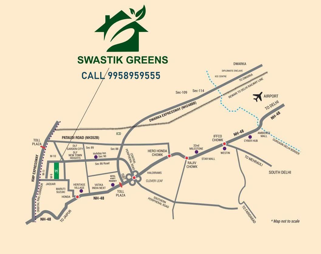 - Connectivity:Â Swastik Greens is well-connected by major roads such as the Western Peripheral Expressway and Pataudi Road.